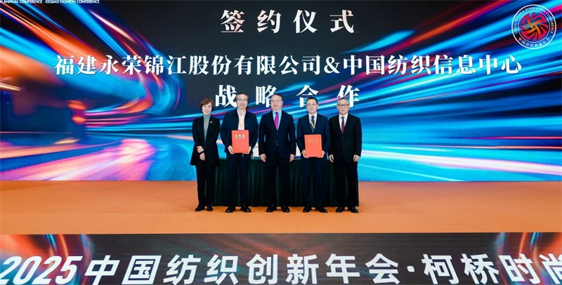 创新生态的构建,需要产业链上下游的“双向奔赴”,也需要专业机构与行业企业的紧密协作。自2021年起,福建永荣锦江股份有限公司与中国纺织信息中心连续五年携手合作,打造了锦纶创新领域互联互通、共创共享的高效平台,在锦纶技术创新、产品开发、产业协同、行业交流、市场推广、品牌传播等多个方面取得了丰硕成果。会上,双方再度达成战略合作,开启下一个全新的五年合作篇章,打造了深化战略互信、共创产业未来的崭新起点。