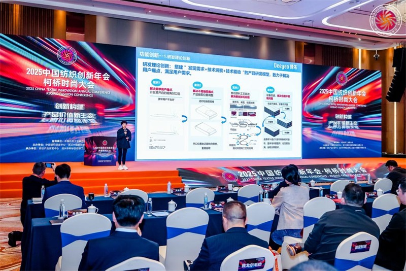 “创新,不只是升级产品的手段,而是产业可持续发展的灵魂。”上海东隆家纺股份有限公司总经理俞丽凝在会上分享了集团转型经验。作为集羽绒原料、家纺面料及服装生产销售于一体的大型企业,面对全球经济复苏乏力及消费结构转型,通过自动化、信息化、数字化推动传统制造向智能制造升级,创新推出无缝云绒冬被,采用双层提花一体成型及石墨烯仿生绒科技,实现环保与性能兼备。